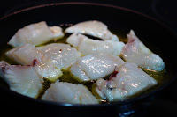 Ayer invité a mi primo Javi a cenar a casa y tenía que sorprenderlo con algo. Un pescado bien preparado siempre es un acierto, ya que es algo que se sale un poco del menú semanal de un estudiante. El bacalao al pil pil es increíble y cuando uno se pone a hacer la salsa, parece realmente magia! Sólo lleva ajo, un poco de guindilla, aceite y bacalao, pero la mezcla de estos ingredientes hacen que el aceite pase de un estado líquido a una textura más espesa. Es el mismo fenómeno que la mayonesa, en el que una proteína y un movimiento rápido hace que el aceite emulsione y se espese. En el caso de la mayonesa, esa proteína es la del huevo. Y en el caso del bacalao al pil pil, esa proteína es la que suelta la piel del pescado.