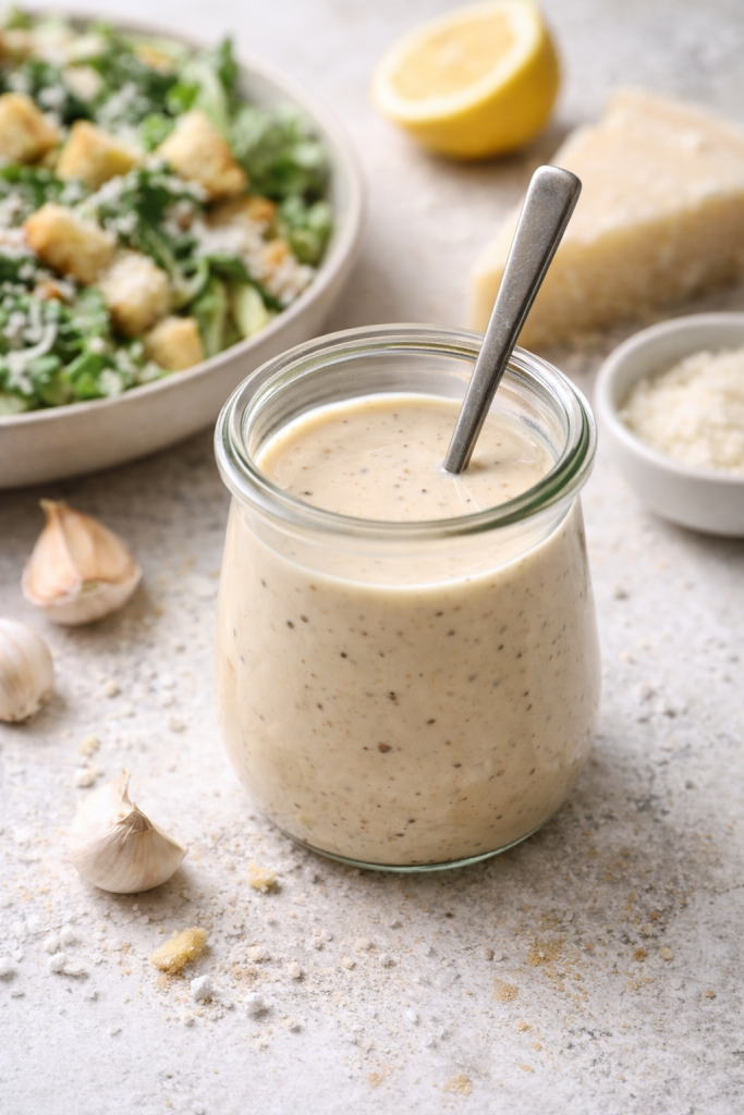 La salsa César es una de esas preparaciones que mucha gente da por hechas y compra sin pensar demasiado, pero cuando la haces en casa y te sale bien, ya no hay vuelta atrás. Tiene ese punto cremoso, salado, ácido y potente que hace que una ensalada normal pase a otro nivel.