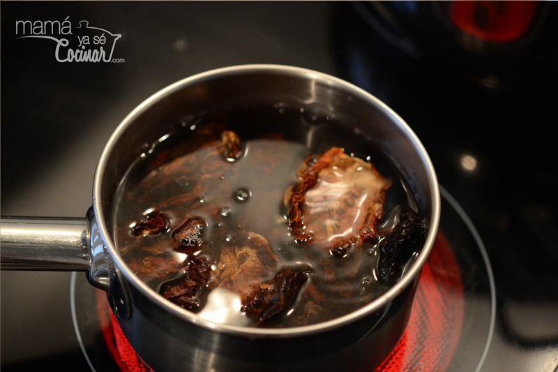 - Calentar agua en un cazo a fuego medio y agregar los tomates secos. Mantenerlos en el agua sin hervir durante 10 minutos o hasta q estén tiernos.