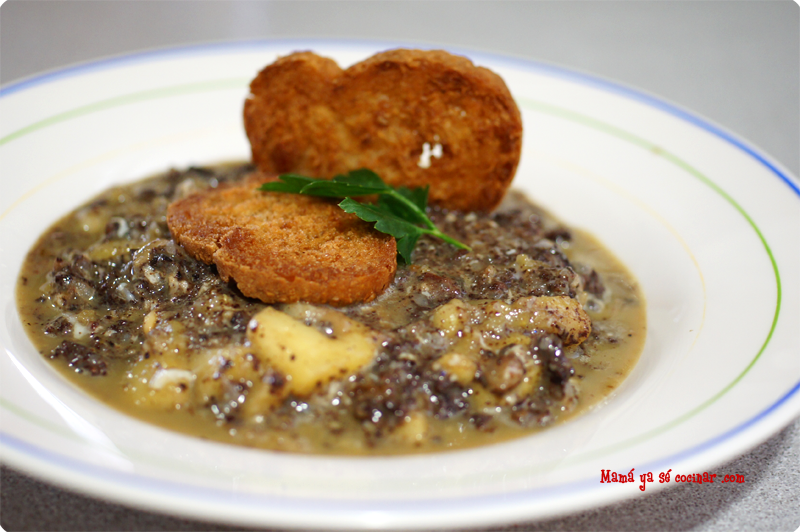 Hace un par de semana fui con mis padres y mi hermano a Burgos y no podíamos volver de allí sin comprar unas morcillas y repartirlas entre algunos familiares y amigos. Con una de las 4 que nos quedamos nosotros preparamos este estupendo revuelto que nos supo a gloria.